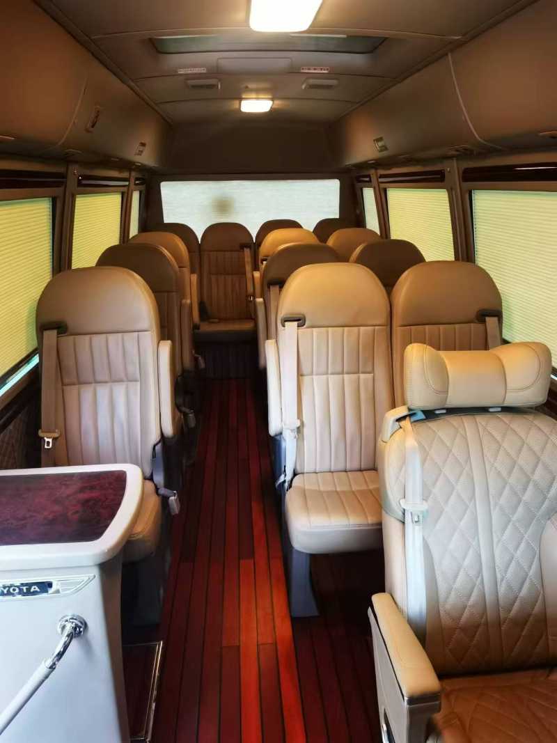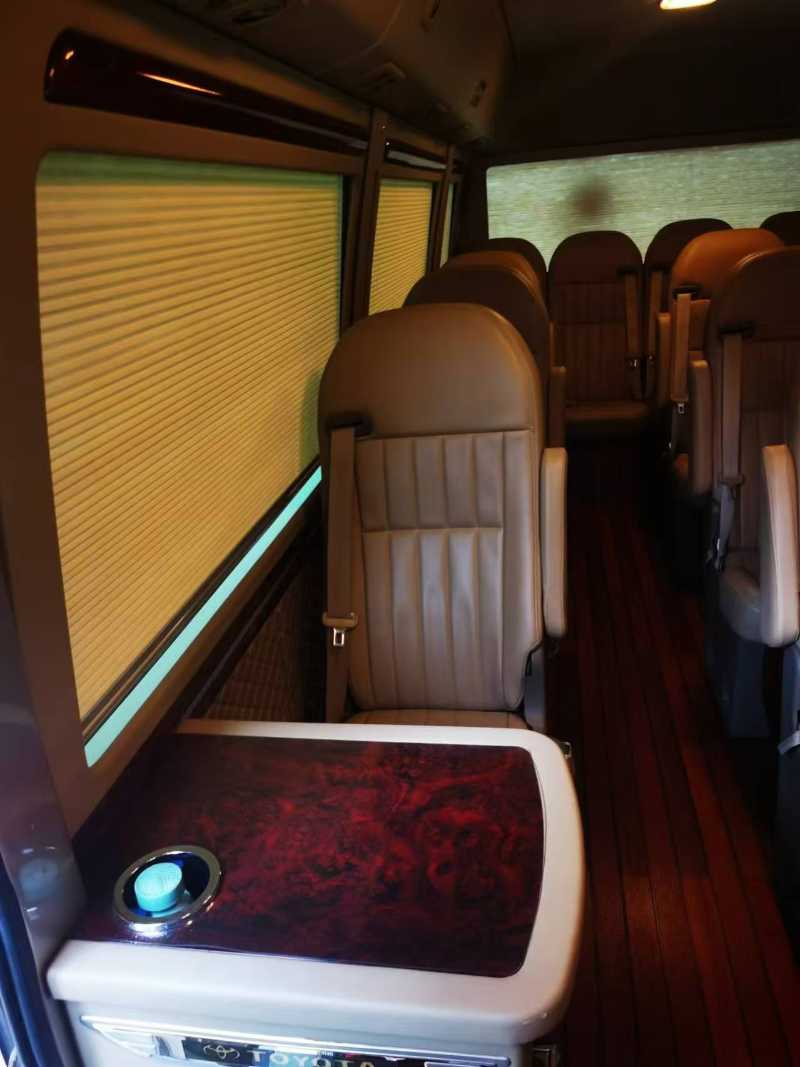 2015年3月上牌的汽油行政版23座考斯特2.7,内饰升级皮面座椅,高铁窗帘,游艇木地板,软包侧板,天窗。