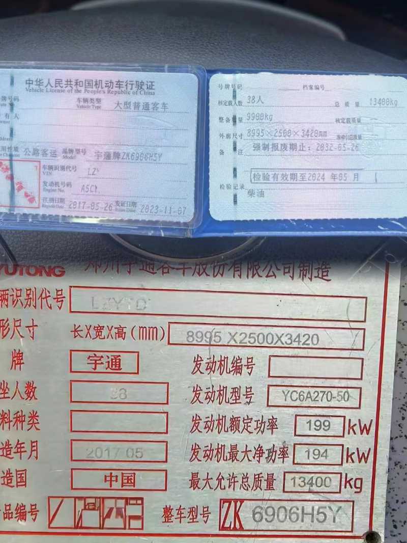 | 客车品牌 | 宇通客车 | 上牌时间 | 2017-05-24 |
