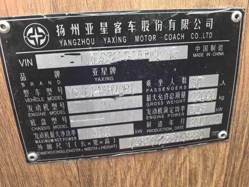 | 客车品牌 | 亚星客车 | 上牌时间 | 2017-12-21 |