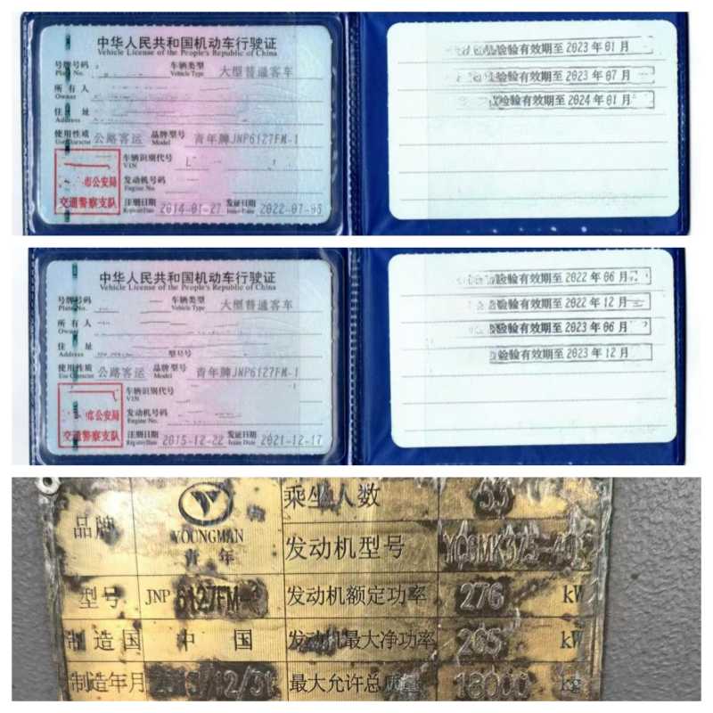 同款3台53座青年6127型客车,两台2014年1月上牌,一台2015年12月上牌,玉柴375发动机,国四排放,有中门,司机卧铺,封闭式行李架,气囊车,公路客运性质,随时提档过户: