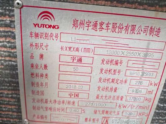 | 客车品牌 | 宇通客车 | 上牌时间 | 2018-02-13 |