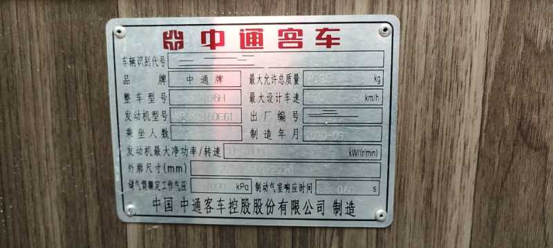 | 客车品牌 | 中通客车 | 上牌时间 | 2020-11-18 |