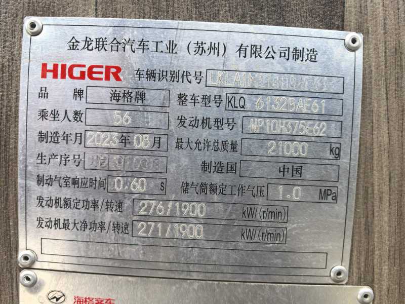 | 客车品牌 | 海格客车 | 上牌时间 | 2023-09-21 |