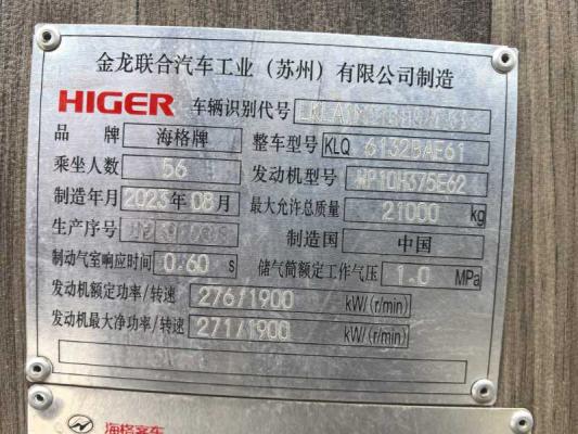 国六56座海格后吊轮,2023年9月上牌海格6132,潍柴375,气囊车,有暖气,中门,上移行李箱,公路客运可提营运。