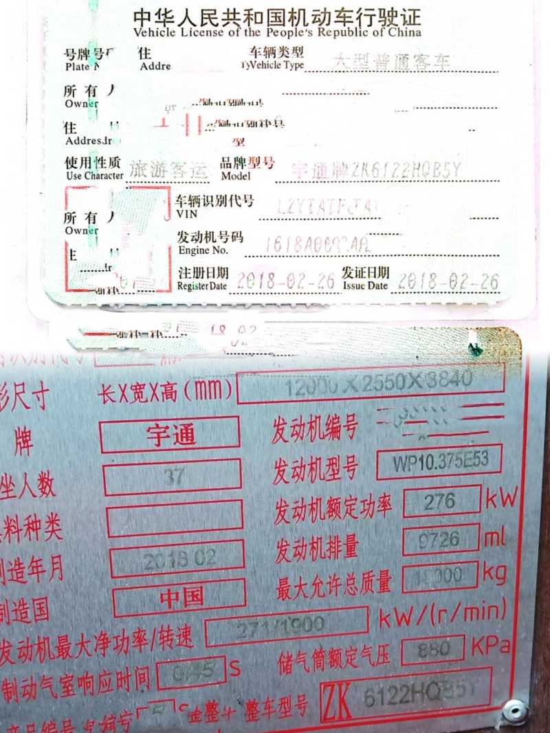 | 客车品牌 | 宇通客车 | 上牌时间 | 2018-10-31 |