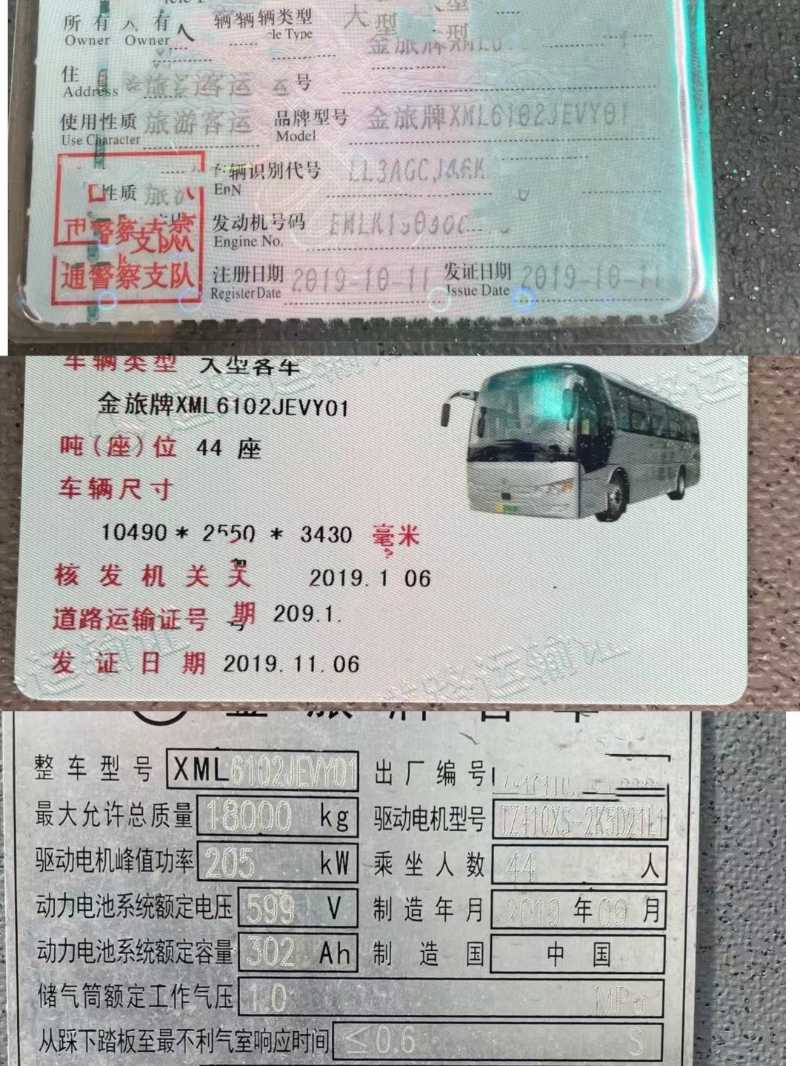 | 客车品牌 | 金旅客车 | 上牌时间 | 2019-10-29 |