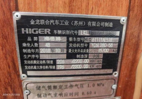| 客车品牌 | 海格客车 | 上牌时间 | 2018-11-28 |