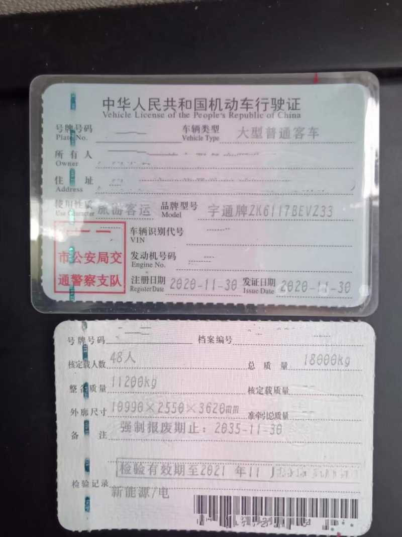 | 客车品牌 | 宇通客车 | 上牌时间 | 2020-11-18 |