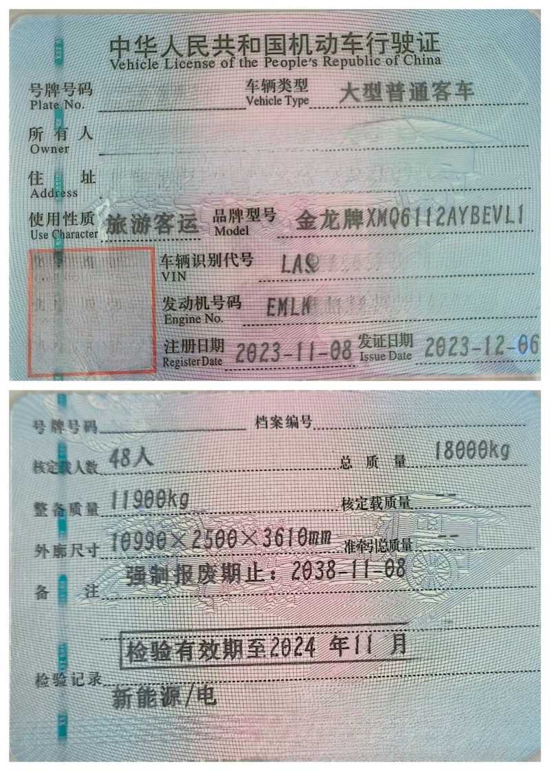 | 客车品牌 | 金龙客车 | 上牌时间 | 2023-11-22 |