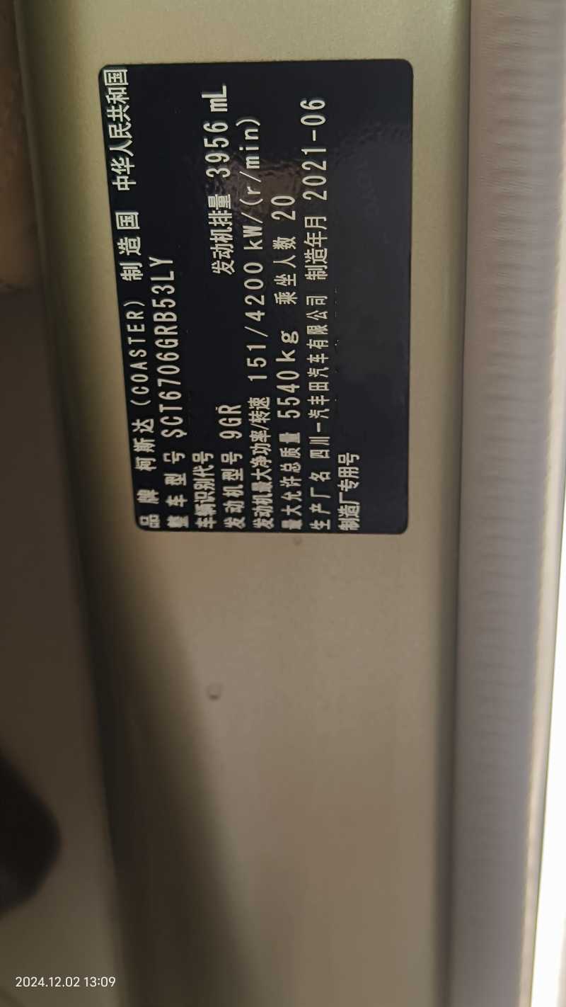 | 客车品牌 | 柯斯达客车 | 上牌时间 | 2021-12-22 |