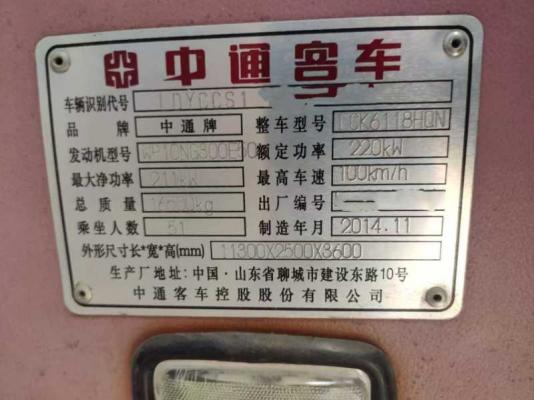 | 客车品牌 | 中通客车 | 上牌时间 | 2014-12-25 |