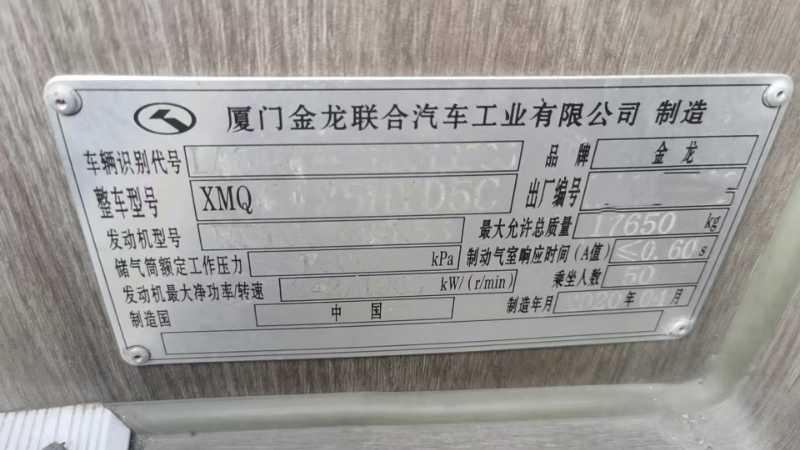 | 客车品牌 | 金龙客车 | 上牌时间 | 2020-05-12 |