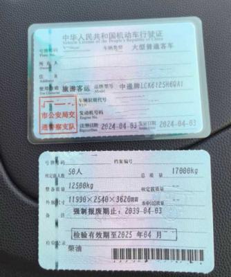 2024年4月 有公告粤牌国六12米50座准新中通6125旅游车