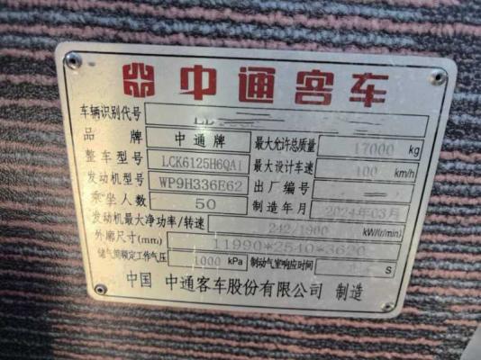 | 客车品牌 | 中通客车 | 上牌时间 | 2024-04-24 |