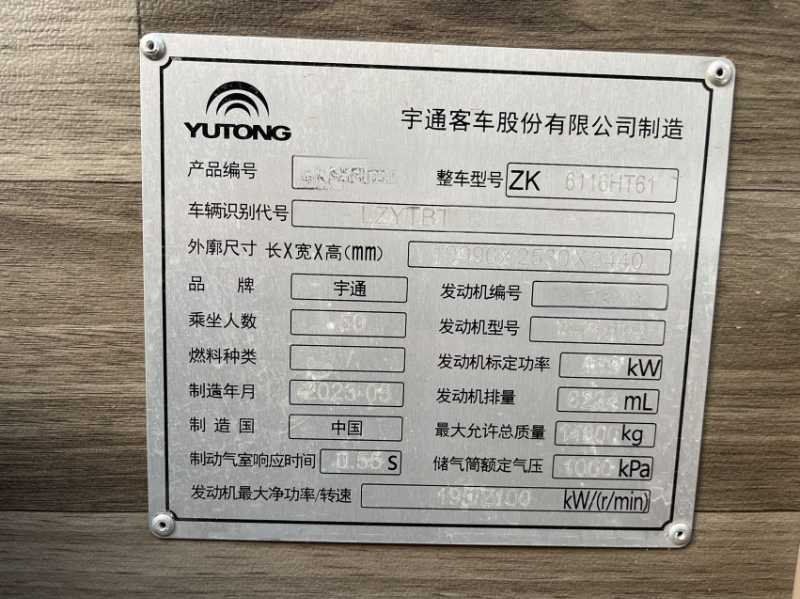 | 客车品牌 | 宇通客车 | 上牌时间 | 2023-06-07 |