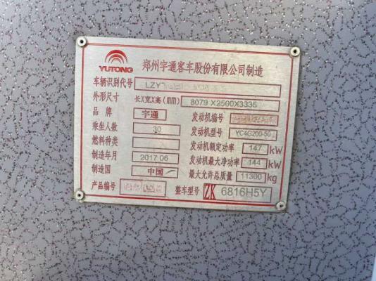 | 客车品牌 | 宇通客车 | 上牌时间 | 2017-07-19 |