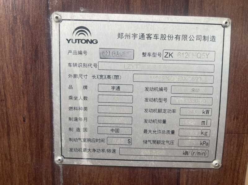 | 客车品牌 | 宇通客车 | 上牌时间 | 2019-09-18 |