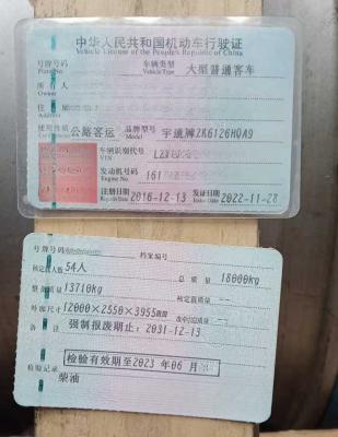 2016年12月上牌54座宇通6126营运车