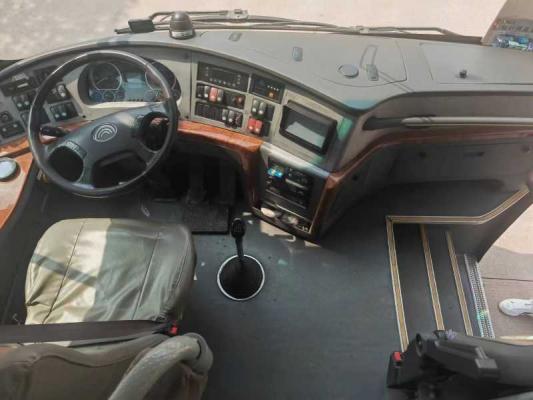 非营运宇通47座LNG天然气非营运国五客车,2014年9月上牌宇通6110,ZF变速箱、萨克斯离合器、整车电泳、进口方向机、德纳车桥、翰德调整臂、比泽尔空调,潍柴270国五机头,有中门,内饰外观成色都很新。