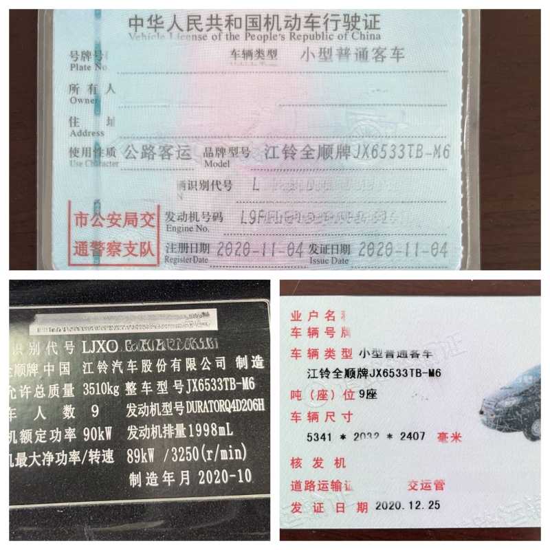| 客车品牌 | 江铃全顺 | 上牌时间 | 2020-11-04 |