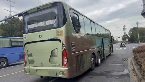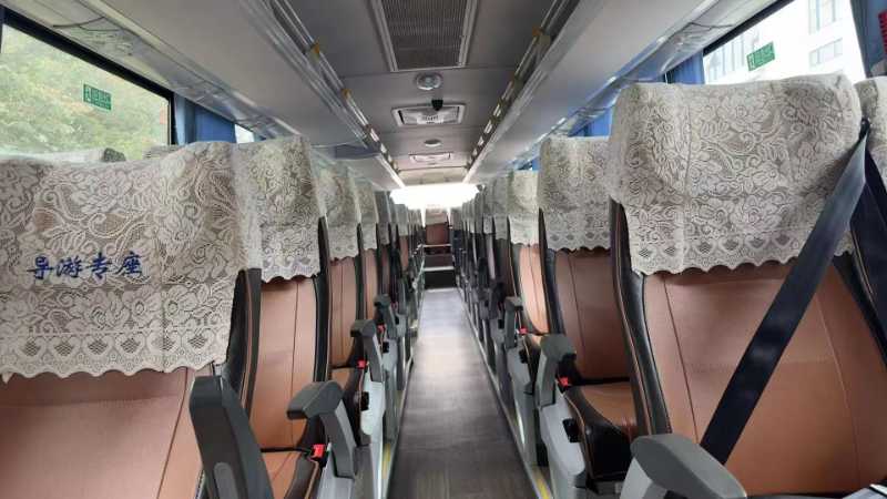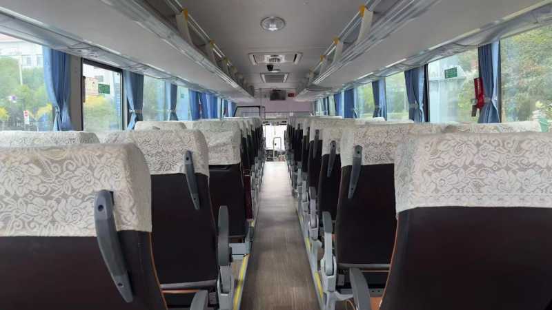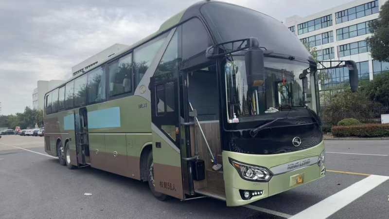 东北配置56座后吊轮金龙6135,2021年上牌,全车铝合金轮毂,潍柴375发动机,有中门,木纹地板,行李架,公里数少,价格给力。