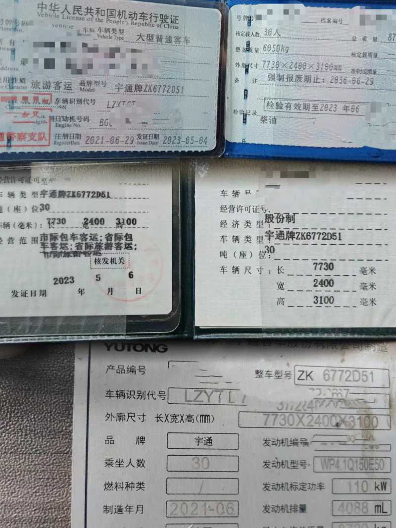 | 客车品牌 | 宇通客车 | 上牌时间 | 2021-06-23 |