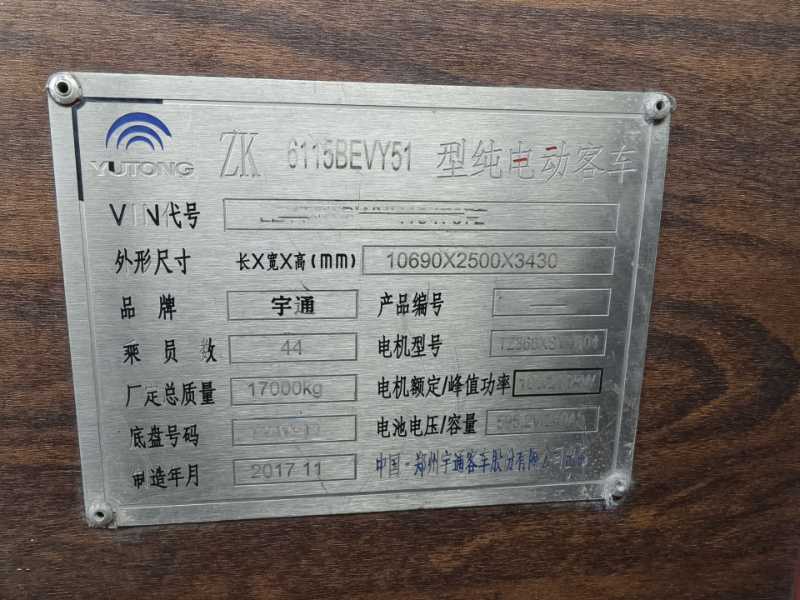 2017年上牌的44座宇通6115新能源电车,宁德时代143度,有电池加热,气囊车,有暖气,通仓,木纹地板,皮质座椅。喜欢的来: