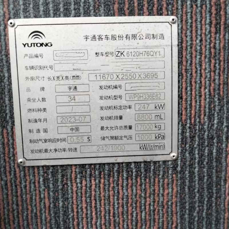 | 客车品牌 | 宇通客车 | 上牌时间 | 2023-08-29 |