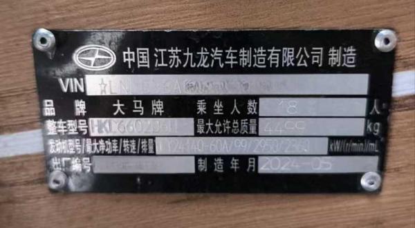 | 客车品牌 | 九龙客车 | 上牌时间 | 2024-06-20 |