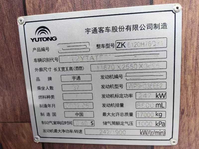 2022年6月上牌同款三台国六37座2+1宇通6120客车