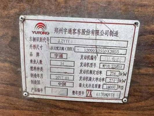 | 客车品牌 | 宇通客车 | 上牌时间 | 2017-04-20 |