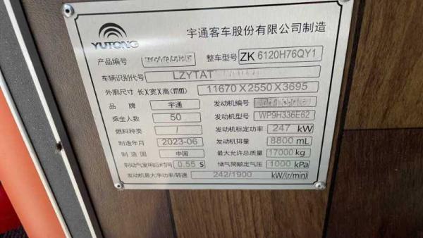| 客车品牌 | 宇通客车 | 上牌时间 | 2023-06-21 |