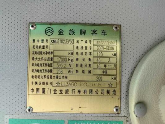 2016年11月上牌46座宁德时代金旅6102新能源电车