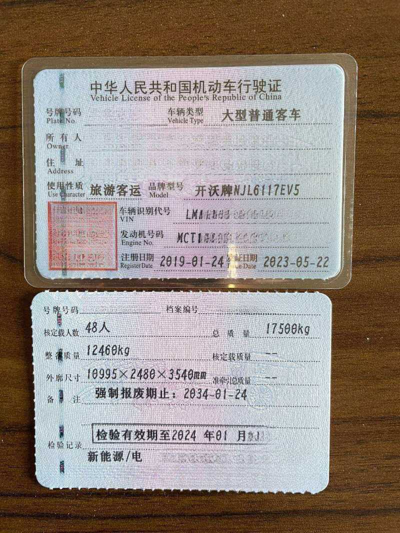 续航300公里48座新能源电车营运版,2019年1月上牌南京金龙开沃6117,2024年5月全车换了新电池质保8年,外观新做的整车油漆,气囊车,中门,皮质座椅,旅游客运带高一级营运证,同款多台可提营运,营运版新能源电车还有安凯,金龙,宇通可选接受任意车型置换!