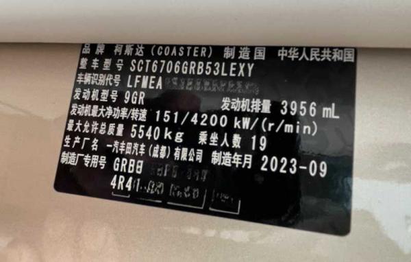 2023年10月 多台有公告4.0排量19座考斯特旅游车