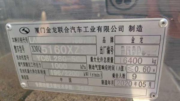 | 客车品牌 | 金龙客车 | 上牌时间 | 2020-06-17 |