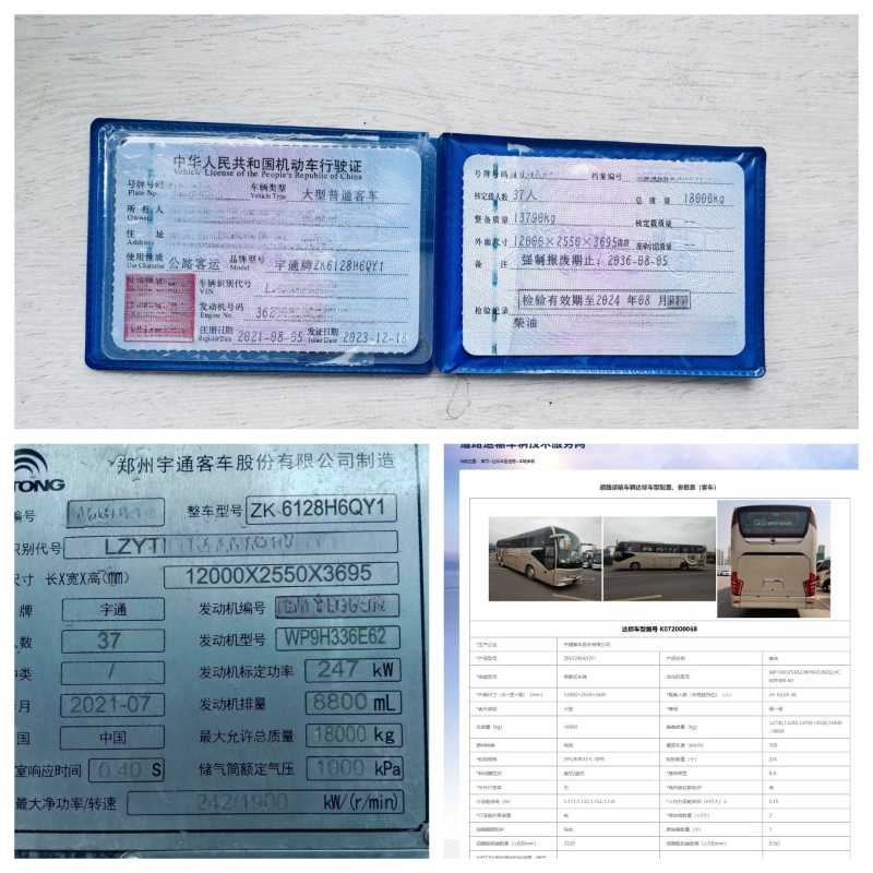 来台东北配国六有公告37座2+1宇通6128,2021年8月上牌,旅游客运性质,潍柴336机头,6条新轮胎,气囊车,中空玻璃,电子风扇,USB接口,有暖气,点歌机,音响,无需投资一分钱,买来即可赚钱, 本公司接受客车置换(国三国四国五,非营运,旅游客运,公路客运,公交客运都可以)。我们有着丰富的外迁内地城市经验。也可做正规出口手续。我们在广东省珠三角区域(深圳、广州、珠海、佛山、东莞、惠州)从事二手车数十年,全部是薄利多销的价格出售,不管是单台还是批量•均享受最诚信的合作态度。也可以根据您需要的指定车型来优选匹配,柴油.油电混合、新能源纯电动均可在珠三角区域看到现车,各种品牌都有,油车,新能源电车,油电混合,天然气客车等,可安排师傅代驾送车,或者物流配送发往全国。我们的宗旨:不但销售的车型丰富多元化,服务更是全方位:可视频看车定车,可代驾送车。另外本公司常年收购2座-55座客车,中巴、大巴都可以操作。 公司地址:1、深圳市南山区西丽街道曙光社区云家供应链有限公司宿舍101车友汇鑫汽车贸易有限公司 2、深圳罗湖区宝岗路1号淘车吧