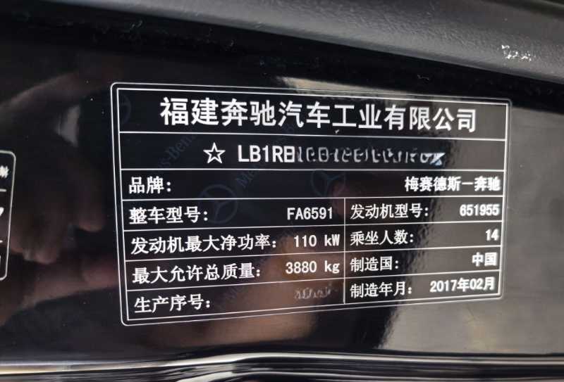 2017年4月上牌14座国五非营运柴油奔驰中型车