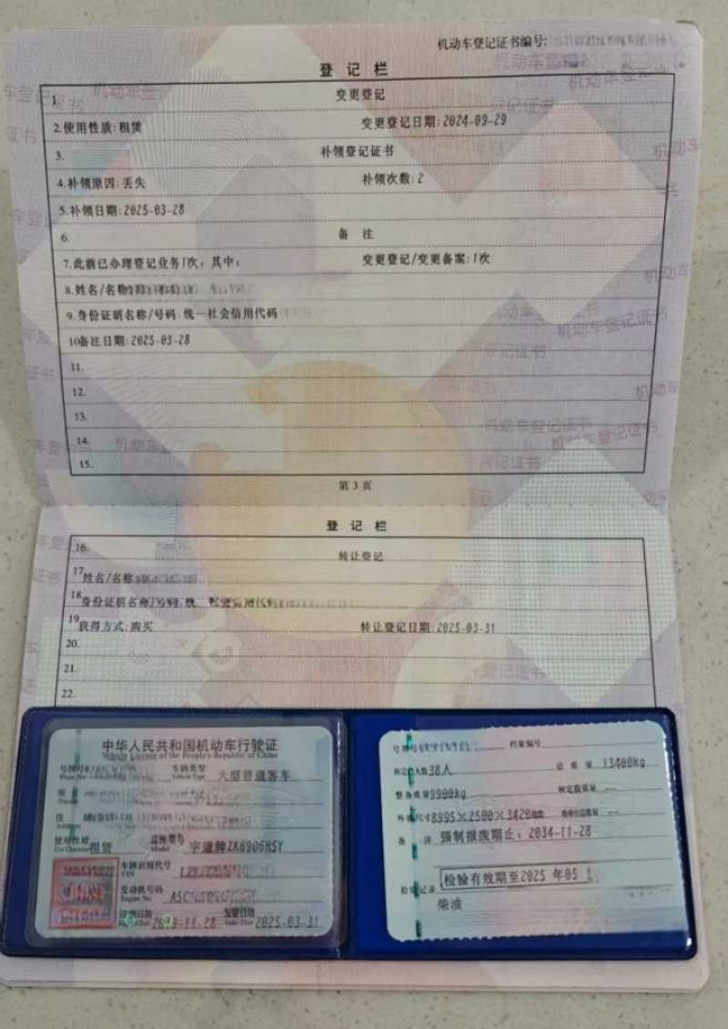 | 客车品牌 | 宇通客车 | 上牌时间 | 2019-11-13 |