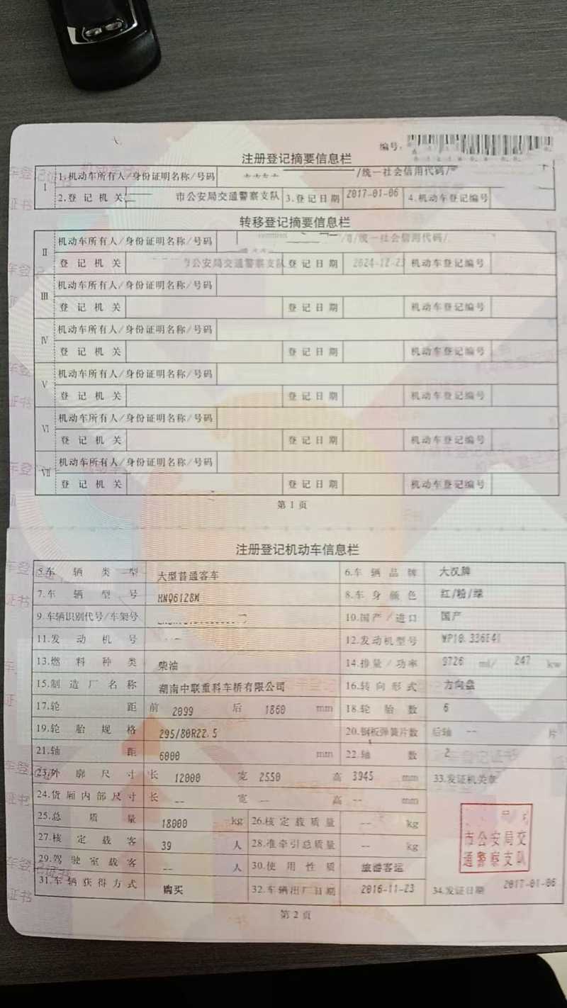 39座半卧大汉牌6128营运车,2017年上牌,潍柴336发动机,国四排放,司机卧铺,内外翻新,头套座椅套新做,轮胎八成新,原厂卫生间加大油箱,保险到2026年2月,旅游客运,可提营运,随时提档提车: 本公司接受客车置换(国三国四国五,非营运,旅游客运,公路客运,公交客运都可以)。我们有着丰富的外迁内地城市经验。也可做正规出口手续。我们在广东省珠三角区域(深圳、广州、珠海、佛山、东莞、惠州)从事二手车数十年,全部是薄利多销的价格出售,不管是单台还是批量•均享受最诚信的合作态度。也可以根据您需要的指定车型来优选匹配,柴油.油电混合、新能源纯电动均可在珠三角区域看到现车,各种品牌都有,油车,新能源电车,油电混合,天然气客车等,可安排师傅代驾送车,或者物流配送发往全国。我们的宗旨:不但销售的车型丰富多元化,服务更是全方位:可视频看车定车,可代驾送车。另外本公司常年收购2座-55座客车,中巴、大巴都可以操作。 公司地址:1、深圳市南山区西丽街道曙光社区云家供应链有限公司宿舍101车友汇鑫汽车贸易有限公司 2、深圳罗湖区宝岗路1号淘车吧