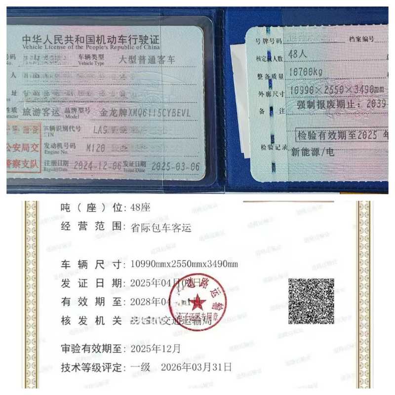 | 客车品牌 | 金龙客车 | 上牌时间 | 2024-12-19 |