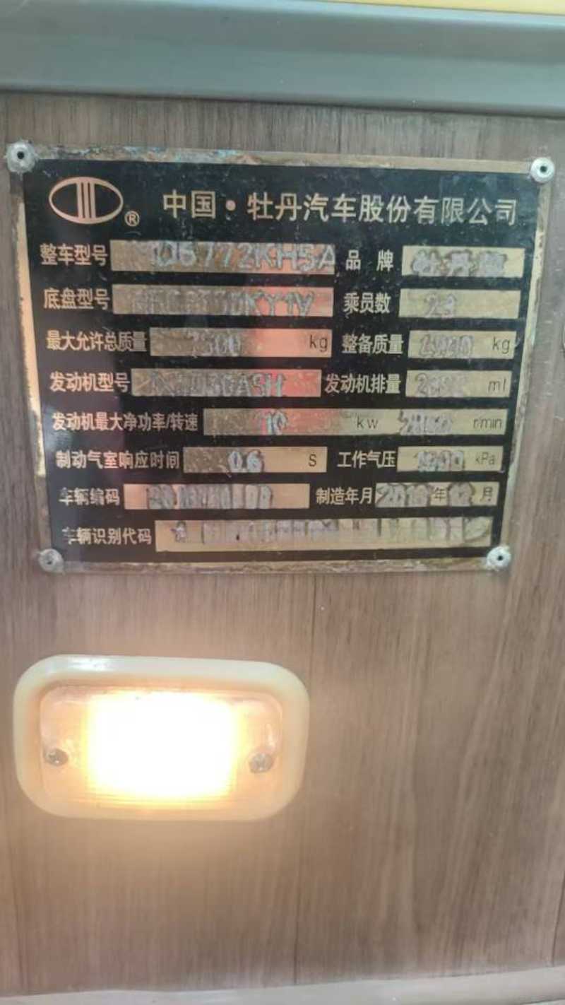 | 客车品牌 | 牡丹客车 | 上牌时间 | 2019-01-16 |