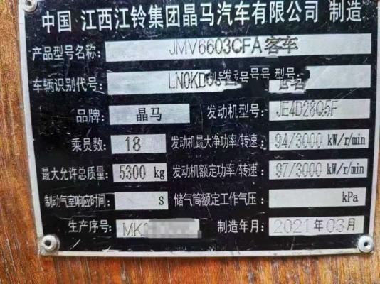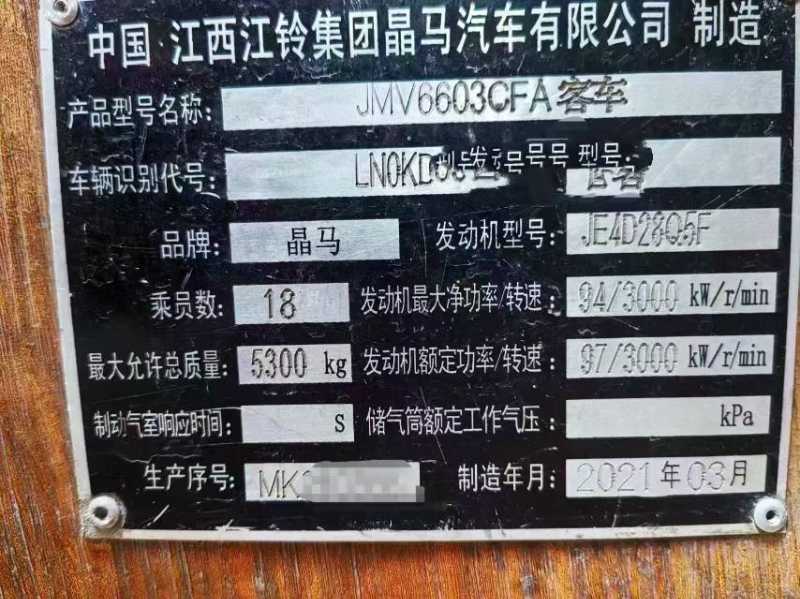 | 客车品牌 | 晶马客车 | 上牌时间 | 2021-03-17 |