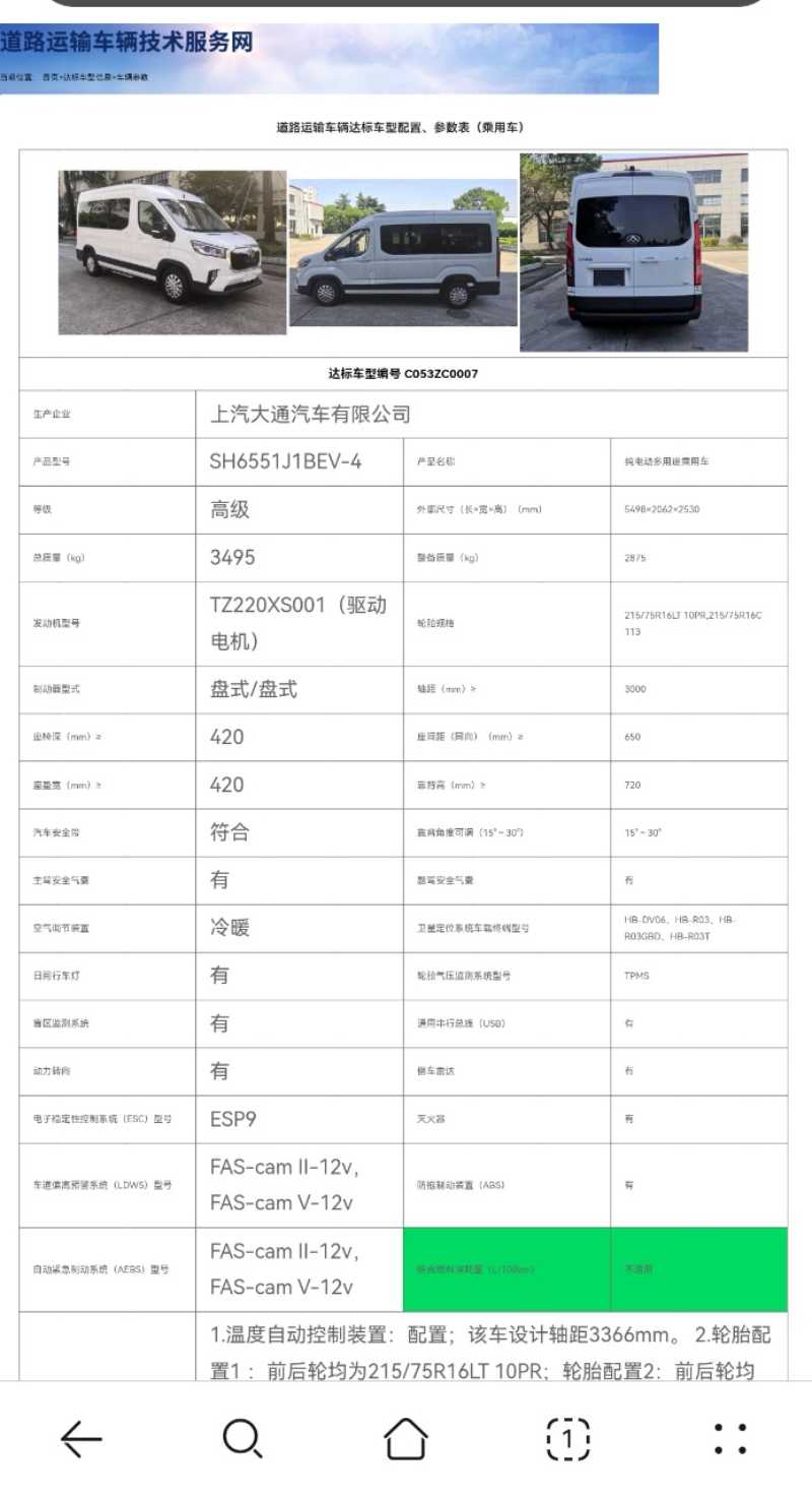 2022年9月上牌 有公告9座大通6551小型新能源营运电车