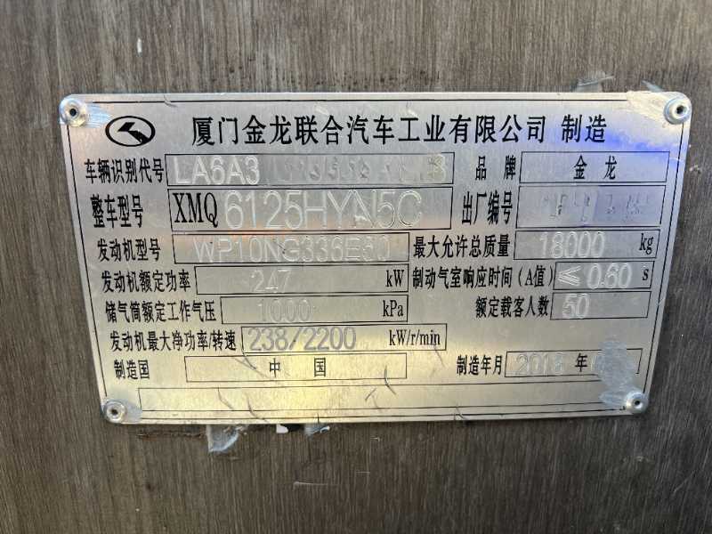 多台东北配国五50座天然气LNG大气罐金龙12米营运车 2018年8月上牌 厦门大金龙 型6125HNY50,搭载潍柴336-52机头,860升大气罐续航1500公里左右,气囊车缓速器 有中门,中空玻璃锅炉暖气 公里数不多,旅游客运可提营运!天然气还有2014年51座金龙可选,欢迎咨询,接受置换 本公司接受客车置换(国三国四国五,非营运,旅游客运,公路客运,公交客运都可以)。我们有着丰富的外迁内地城市经验。也可做正规出口手续。我们在广东省珠三角区域(深圳、广州、珠海、佛山、东莞、惠州)从事二手车数十年,全部是薄利多销的价格出售,不管是单台还是批量•均享受最诚信的合作态度。也可以根据您需要的指定车型来优选匹配,柴油.油电混合、新能源纯电动均可在珠三角区域看到现车,各种品牌都有,油车,新能源电车,油电混合,天然气客车等,可安排师傅代驾送车,或者物流配送发往全国。可视频看车定车,可代驾送车。另外本公司常年收购2座-55座客车,中巴、大巴都可以操作。 公司地址:1、深圳市南山区西丽街道曙光社区云家供应链有限公司宿舍101车友汇鑫汽车贸易有限公司 2、深圳罗湖区宝岗路1号淘车吧