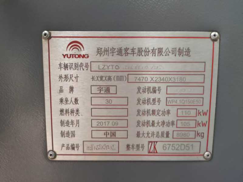 | 客车品牌 | 宇通客车 | 上牌时间 | 2017-09-19 |