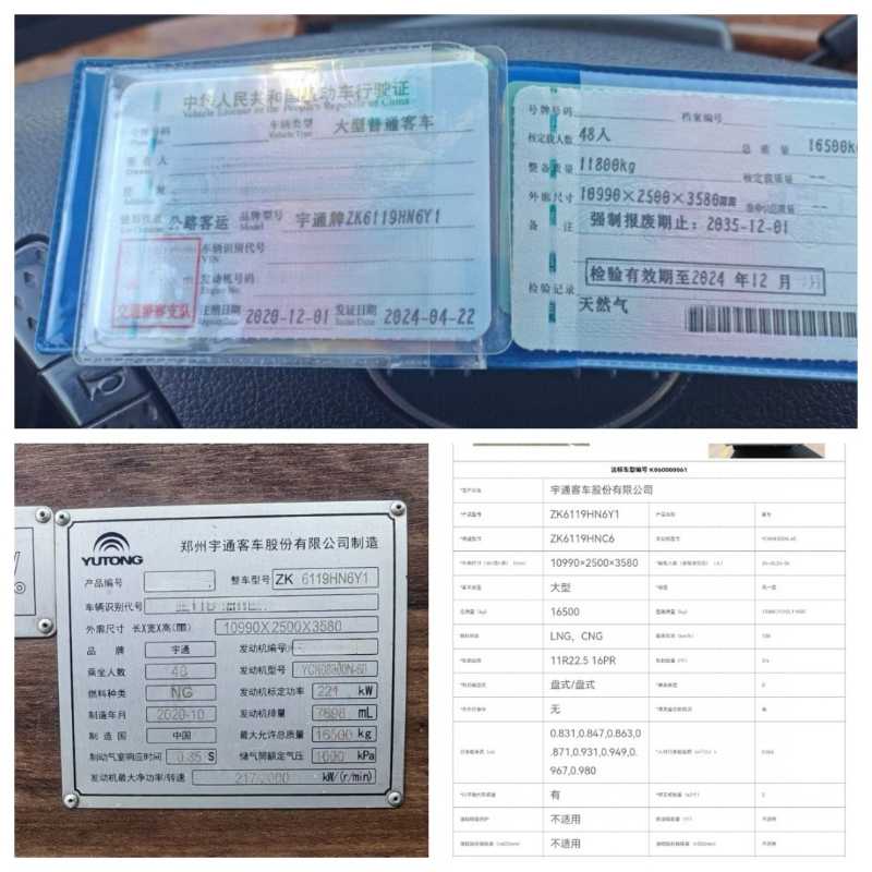 | 客车品牌 | 宇通客车 | 上牌时间 | 2020-12-24 |