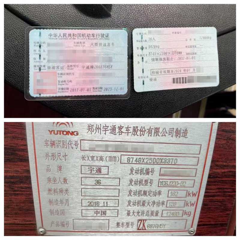 来台国五36座宇通6876营运车 2017年1月上牌,玉柴220发动机,气囊车,通仓,行李架。皮质座椅,木纹地板,旅游客运可提营运,喜欢的来: 本公司接受客车置换(国三国四国五,非营运,旅游客运,公路客运,公交客运都可以)。我们有着丰富的外迁内地城市经验。也可做正规出口手续。我们在广东省珠三角区域(深圳、广州、珠海、佛山、东莞、惠州)从事二手车数十年,全部是薄利多销的价格出售,不管是单台还是批量•均享受最诚信的合作态度。也可以根据您需要的指定车型来优选匹配,柴油.油电混合、新能源纯电动均可在珠三角区域看到现车,各种品牌都有,油车,新能源电车,油电混合,天然气客车等,可安排师傅代驾送车,或者物流配送发往全国。我们的宗旨:不但销售的车型丰富多元化,服务更是全方位:可视频看车定车,可代驾送车。另外本公司常年收购2座-55座客车,中巴、大巴都可以操作。 公司地址:1、深圳市南山区西丽街道曙光社区云家供应链有限公司宿舍101车友汇鑫汽车贸易有限公司 2、深圳罗湖区宝岗路1号淘车吧