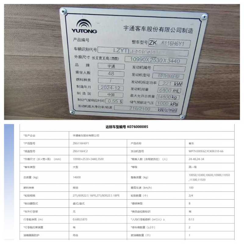 | 客车品牌 | 宇通客车 | 上牌时间 | 2025-01-14 |