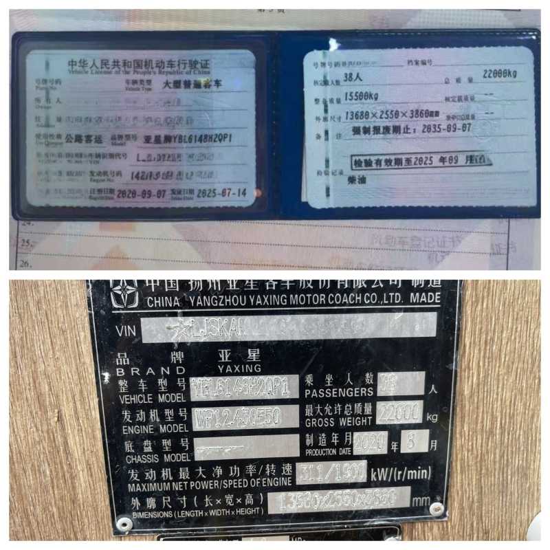 | 客车品牌 | 亚星客车 | 上牌时间 | 2020-09-16 |